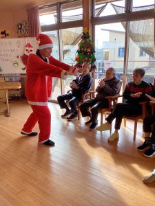 メリークリスマス🎄 2025年12月24日2026年1月7日 スタッフ デイサービス六角堂最新のお知らせ 12月23日(火)少し早めのクリスマス会を開催しました。 午前中は、げんき塾の子ども達が遊びに来てくれました! 利用者の皆様が、一つひとつ丁寧に作り上げられた クマのサンタクロースをプレゼントしました🎁 みらい塾の子ども達へも会いに行きプレゼント🎁 みんな好きな色のクマさんを選んでくれました♪ そして、午後からは六角堂で合同クリスマス会! 歌をうたったり、紙芝居を見たり スタッフの出し物に笑顔溢れる時間を過ごしました♪ 続きを読む...