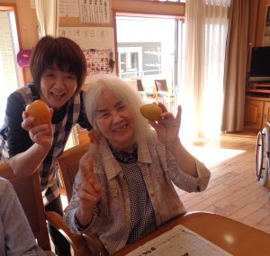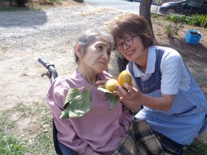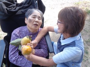 みんなで柿の木まで出掛け、柿を収穫にいきました。