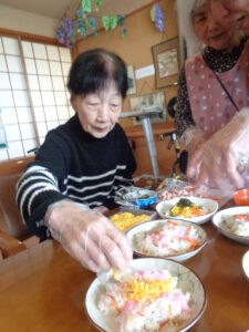 昼食つくりで、ちらし寿司を作りました。
