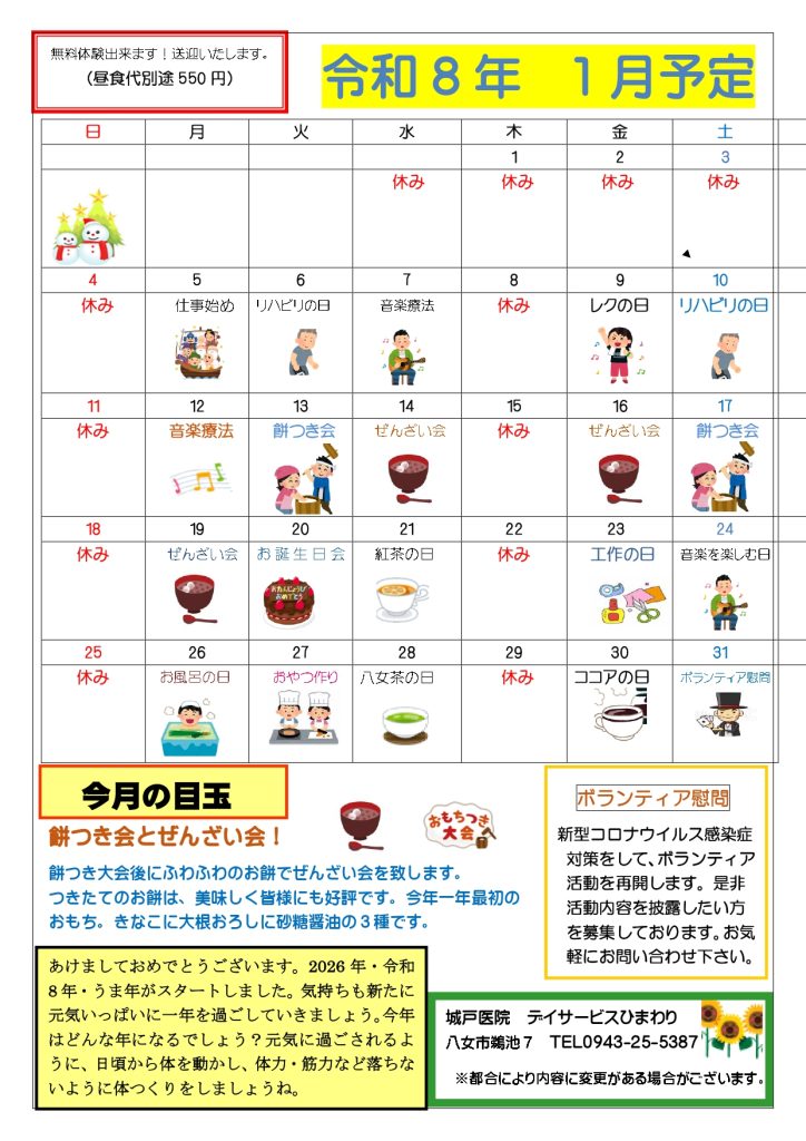 対象:八女市より『生きがいデイサービスチケット』の交付を受けている方